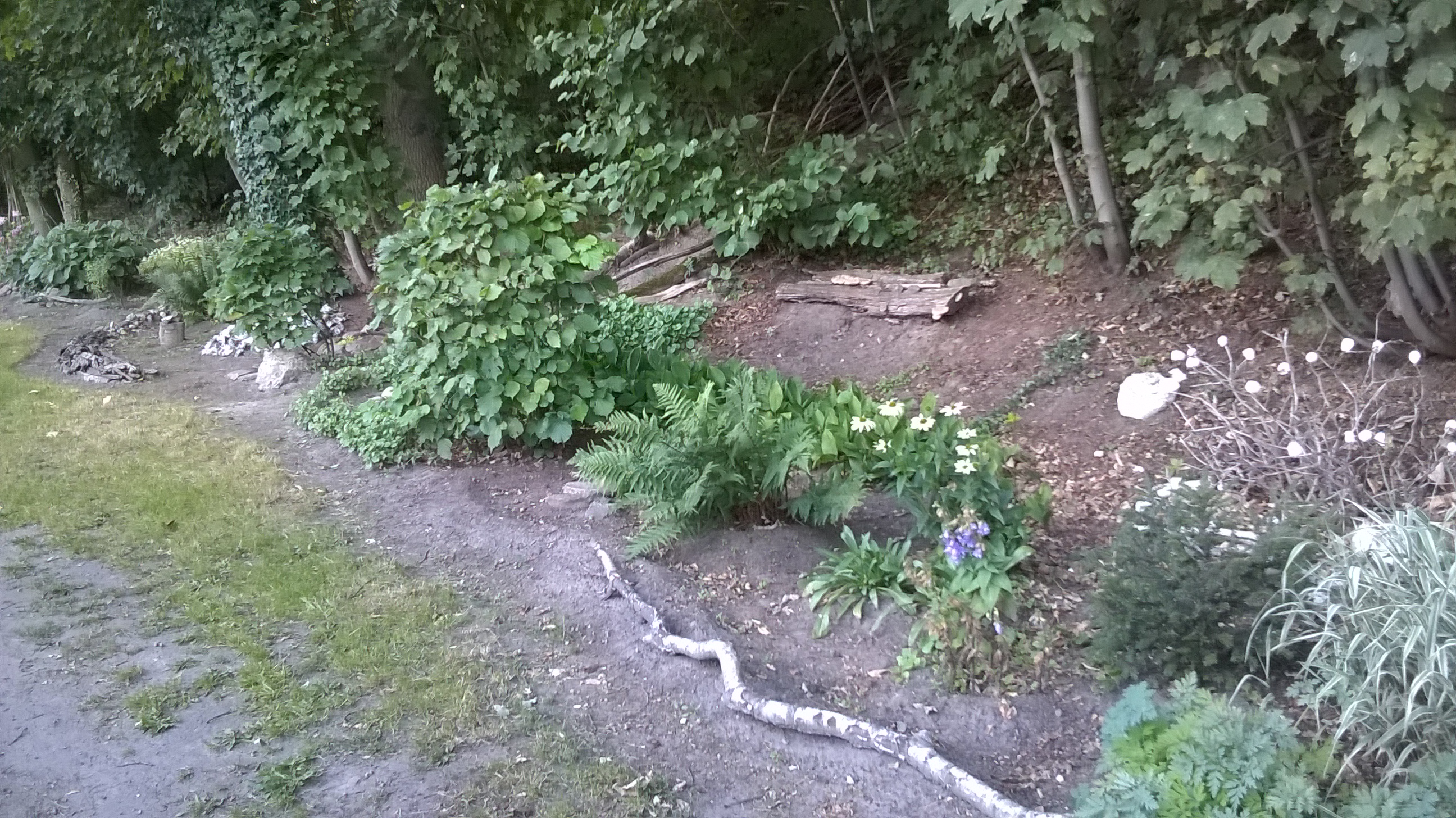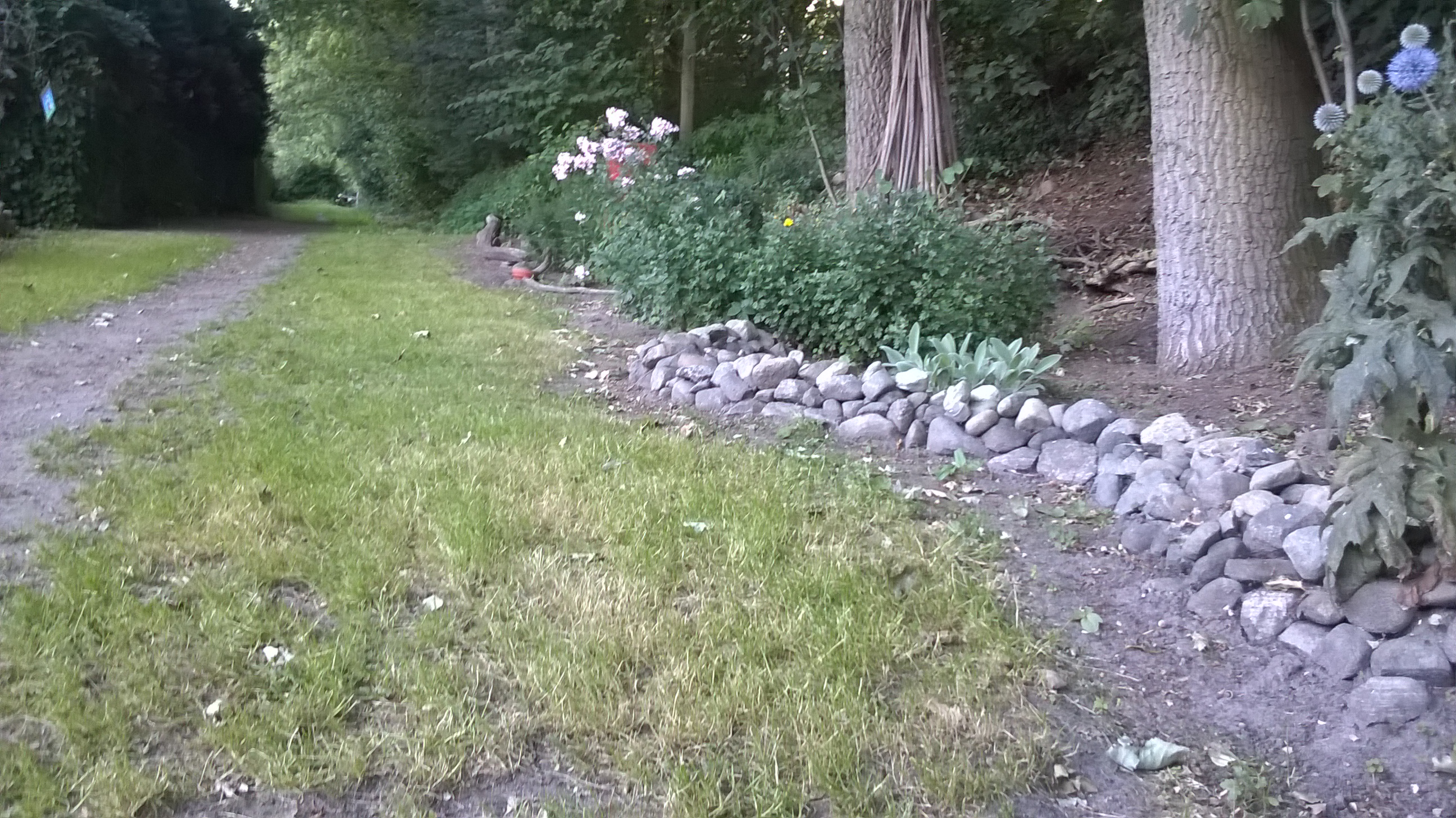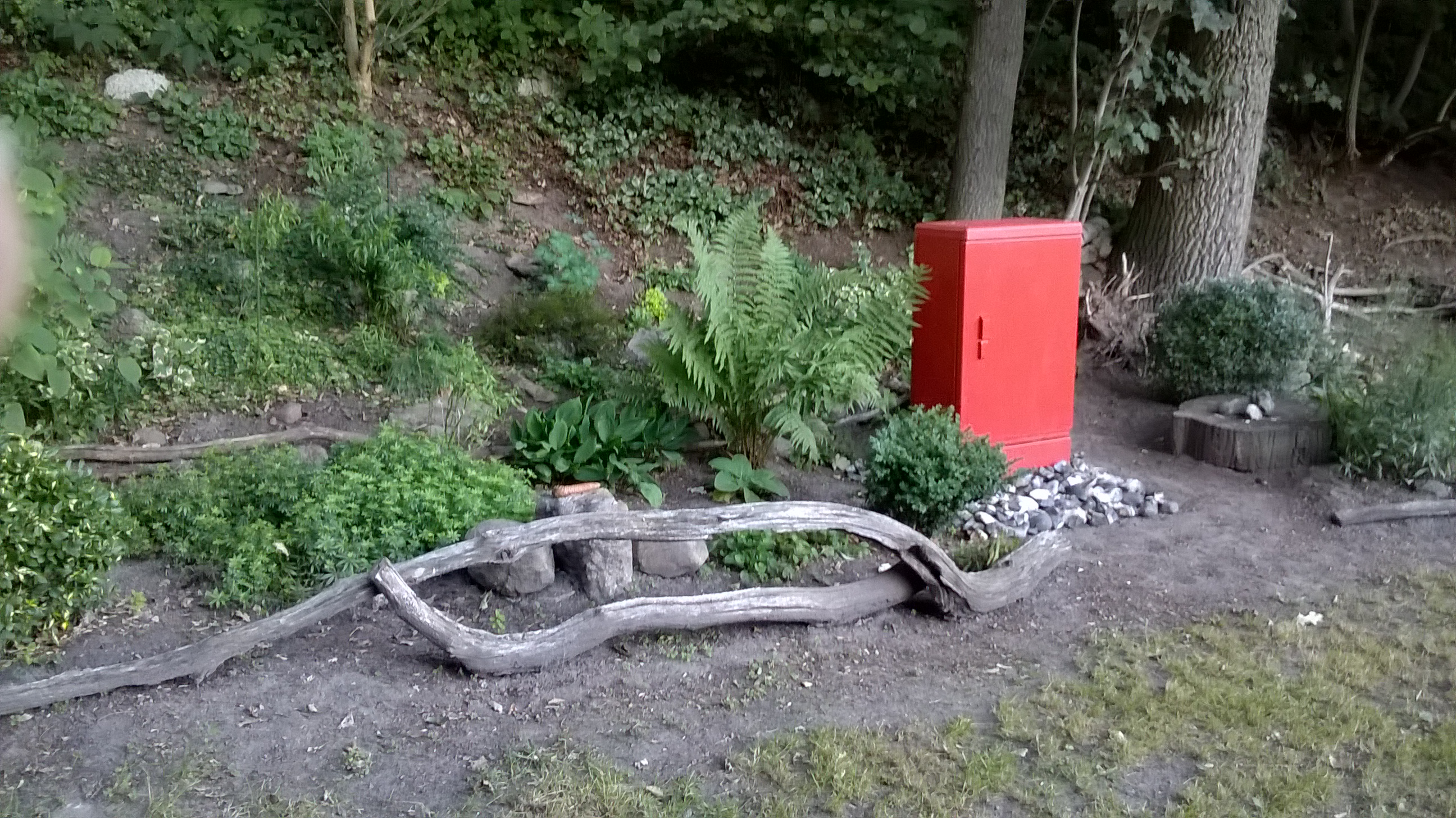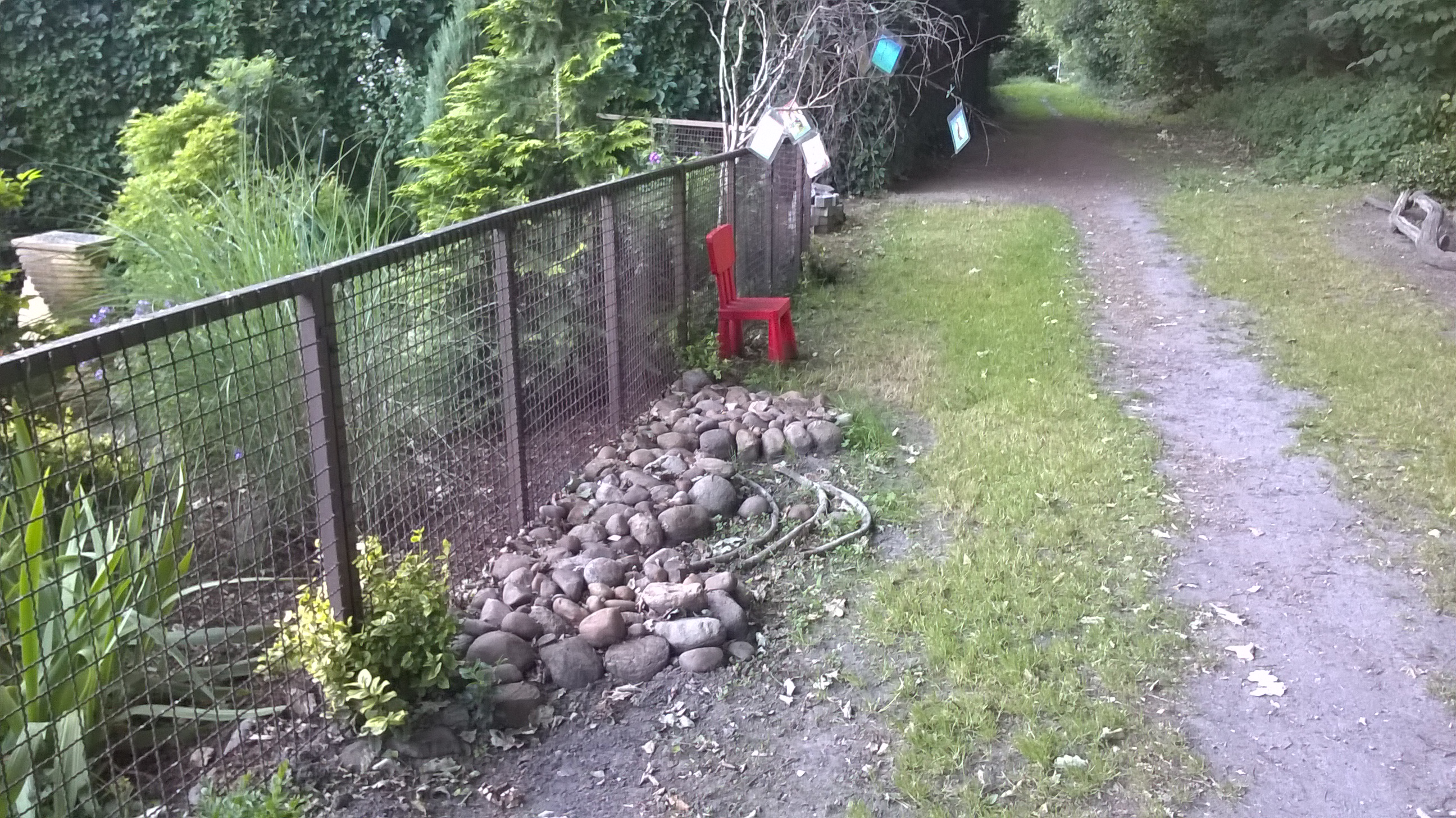 ein kunstvolles Arrangement von Natur und Artefakten am Pfad an der Kippe