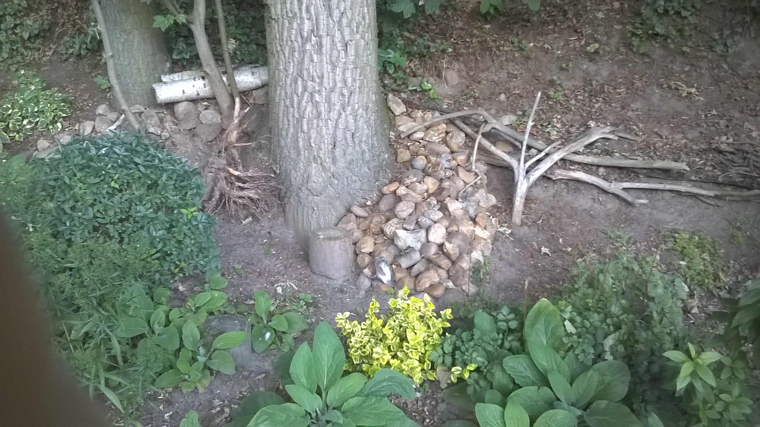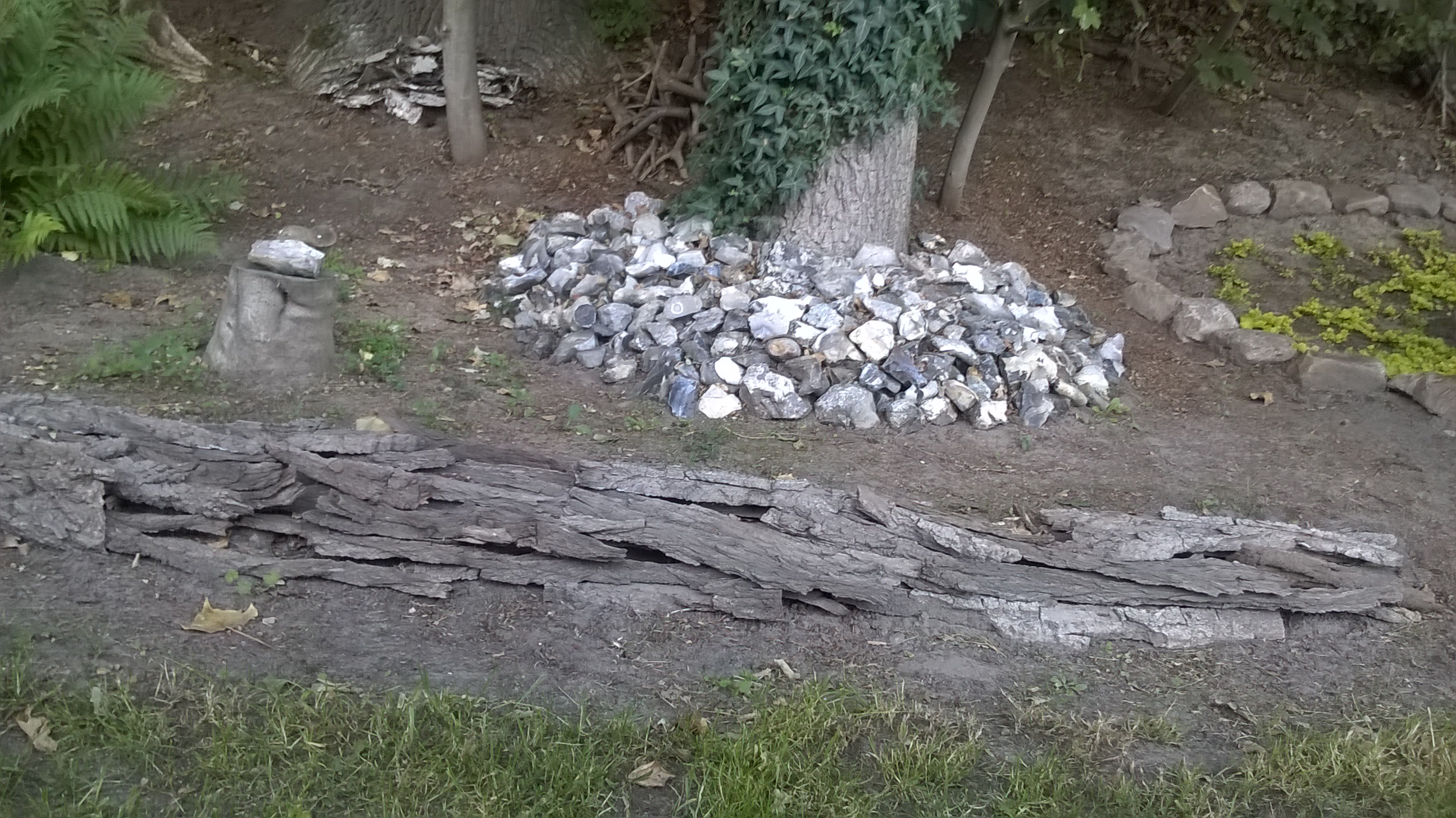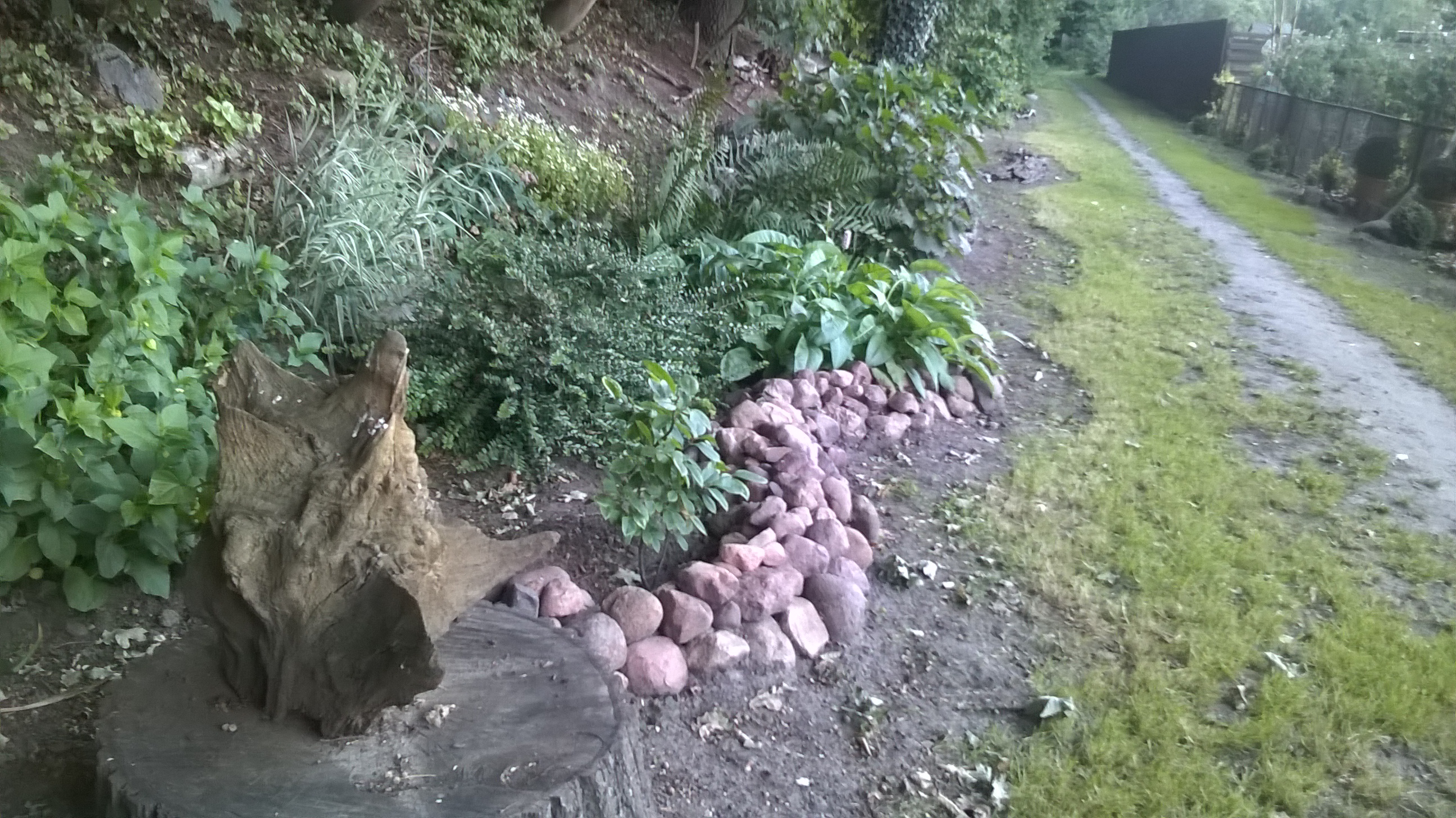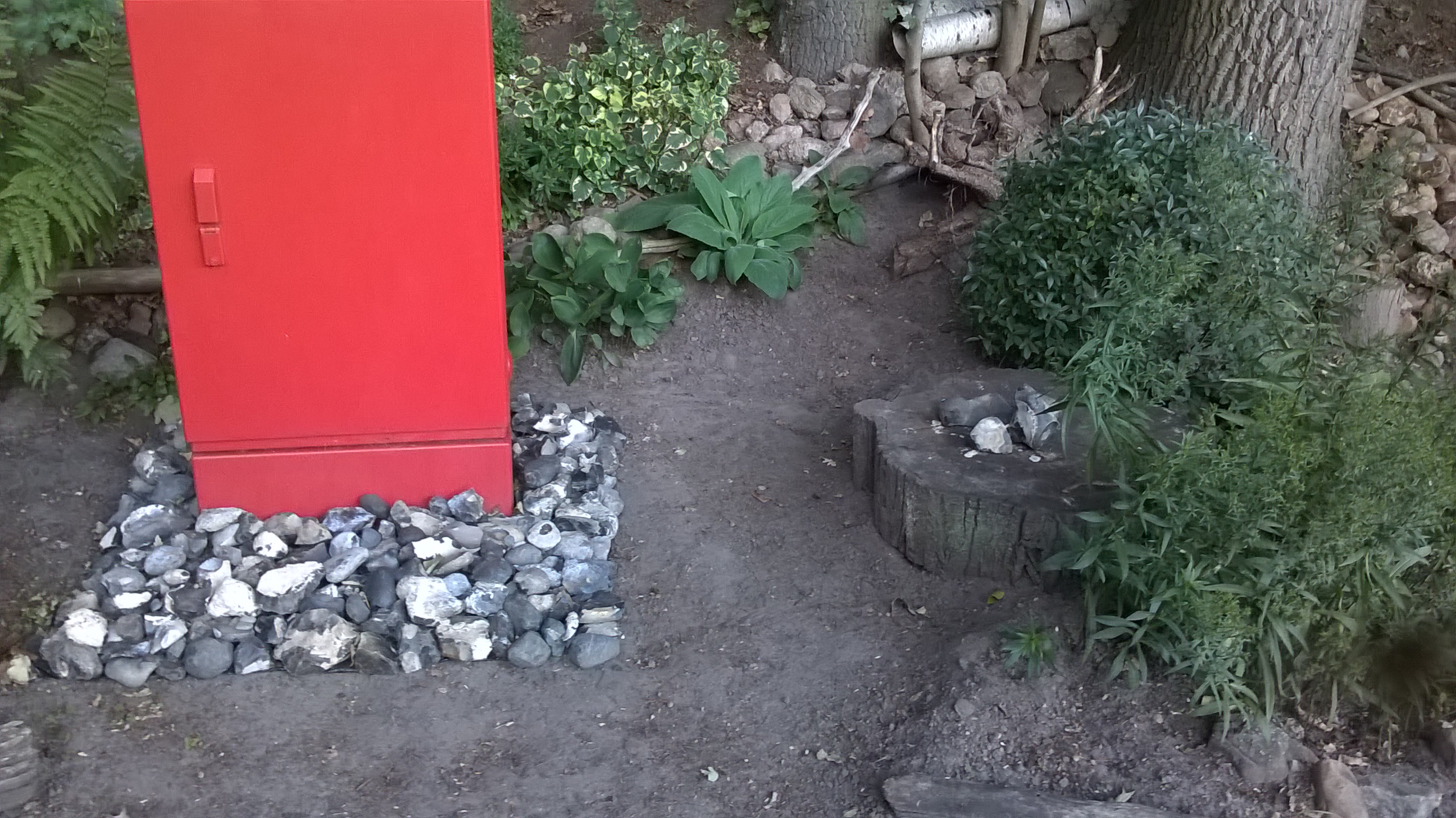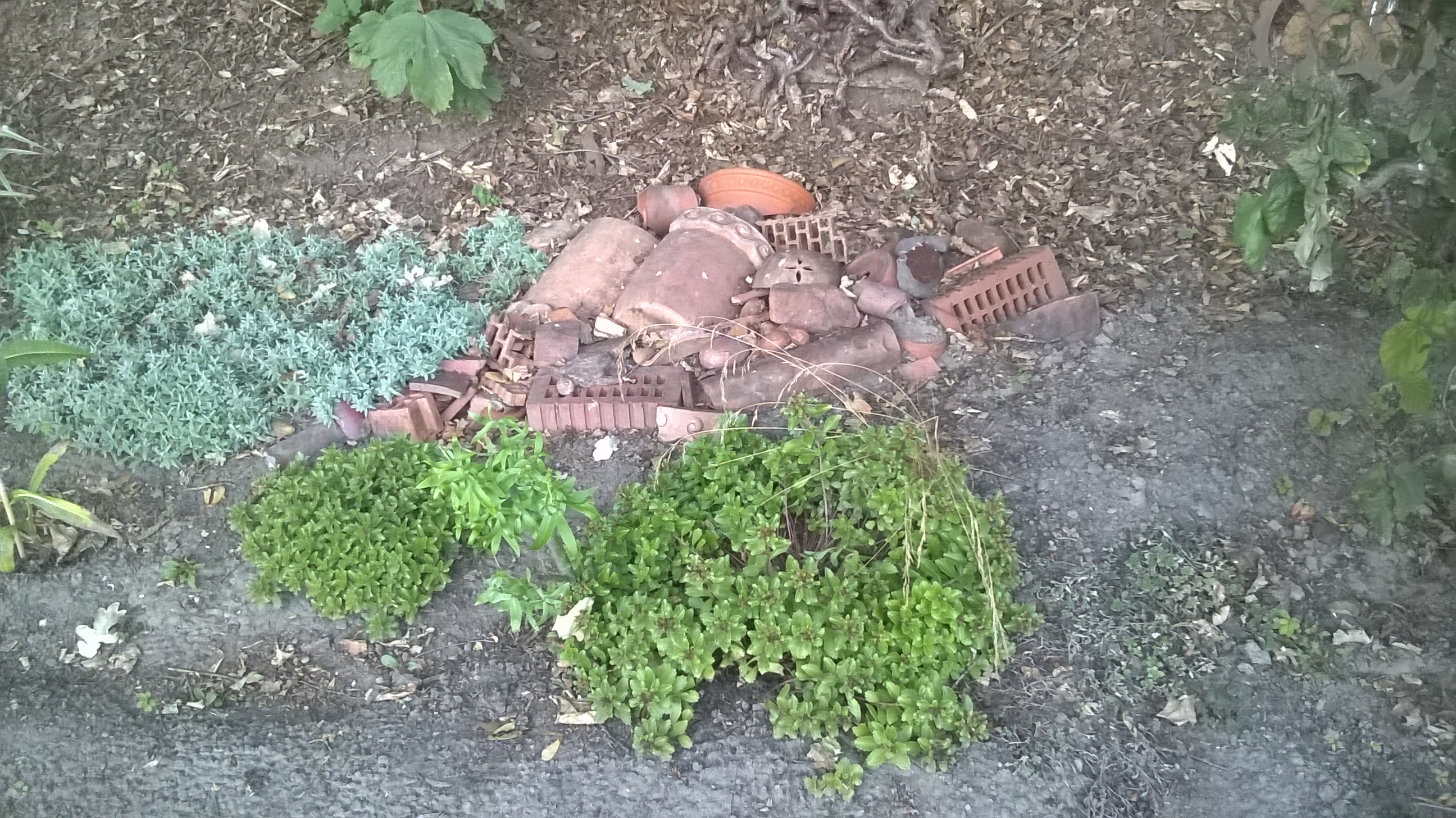 ein kunstvolles Arrangement von Natur und Artefakten am Pfad an der Kippe
